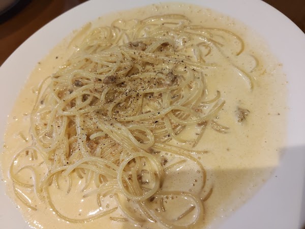 んで、バケットと合わせ、、、ゴルゴンゾーラと生ハムのパスタがまた美味しくてノミモノがすすみました。