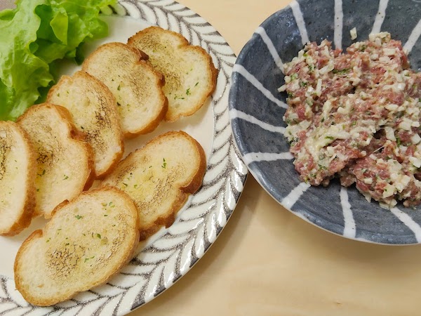 夕食用に買ったマグロは、、、裏を見ると筋だらけで、筋を取ってから「たたき」にしました。