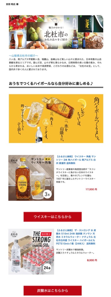 なのですが、どうしたはずみか北杜市からワス宛に来たオススメふるさと納税メールだけは開けちゃいました。