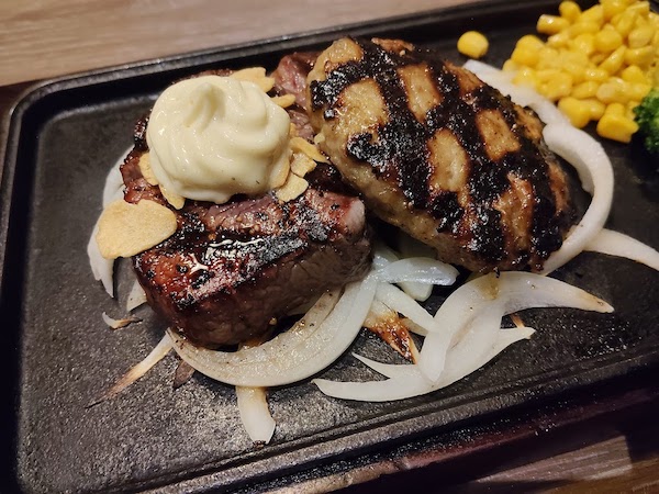 ヒレ150g に匠ハンバーグ1つ追加 それにライス(中)を注文しました。