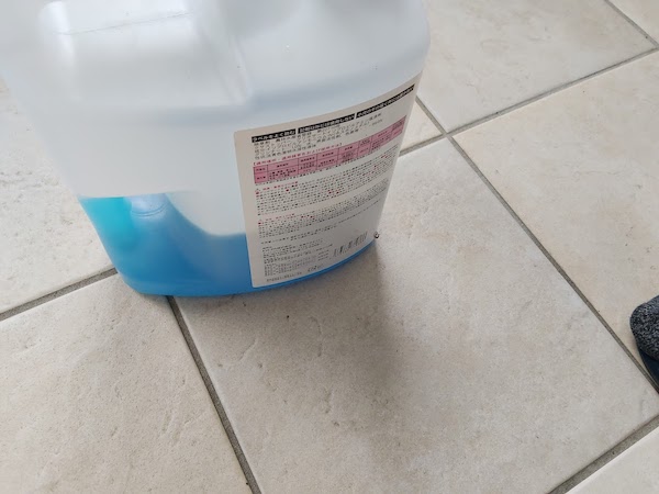 車庫にあった水色の液体を入れようとしたんですよ。