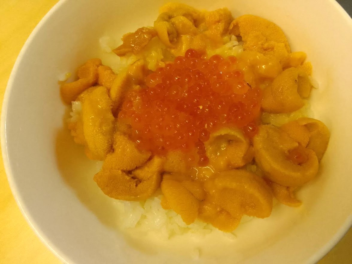 手頃な刺身は完売でして、美味しそうな雲丹をゲット。彼だけ特性うにいくら丼という豪華な夕食とあいなりました。