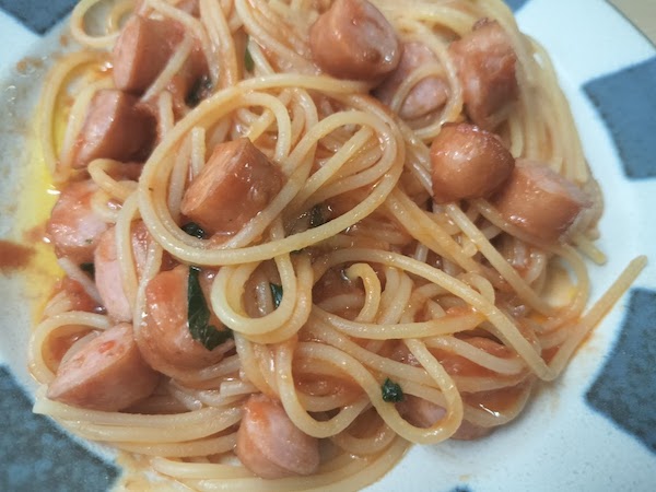 さて、しつこいぐらいの朝パスタはペペロンチーノオイルとシャウエッセン+イタパセだけのパスタです。ミニトマトも入れるつもりだったのですが忘れてましたw