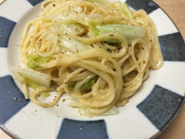 昨日の夜はすき焼きを食べまして、、、朝食はその余った白菜を使ったクリームパスタです。