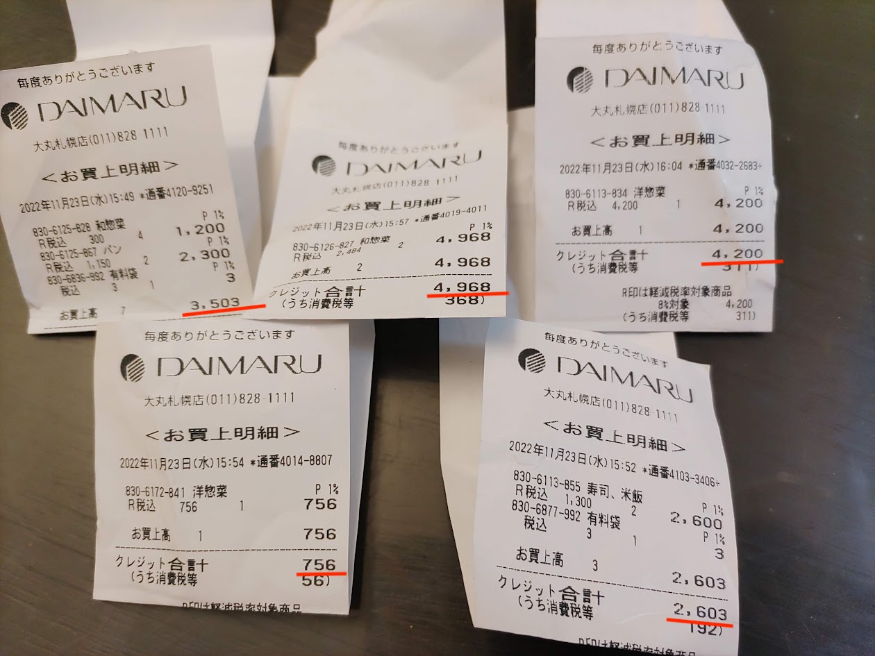 先日の23日なんですが、日帰り出張でワスは「デパ地下でうんまいもの買って帰るわー」と宣言したんですよ。祝日の午後4時過ぎ、デパ地下は人がいっぱいでした。なんだかみなさん美味そうなものを我先に購入しております。ついついワスもワスも、、、と勢いづき気がつくと↓こんなに買ってました。